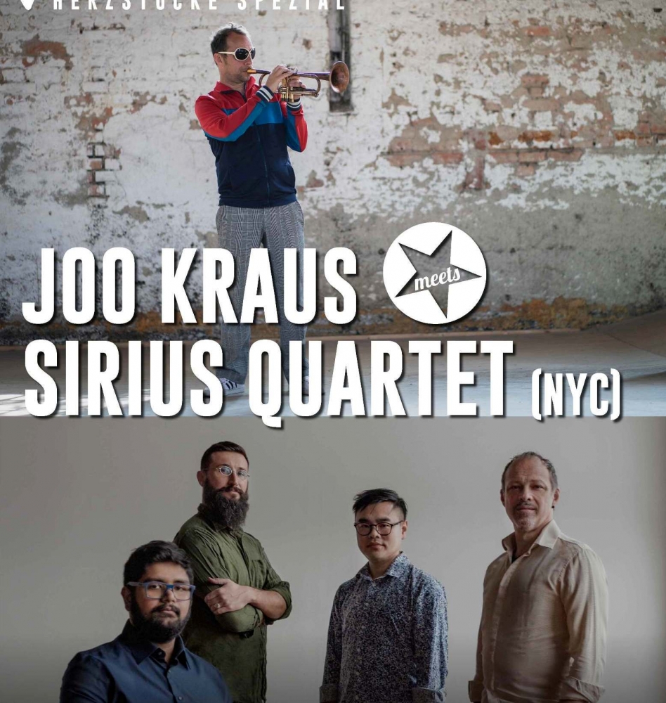 Joo Kraus meets Sirius Quartet Der fünffache JazzAward-Preisträger, zweifache Grammy-Nominierte, Gewinner des ECHO Jazz und Ulmer Trompeter Joo Kraus lädt innerhalb dieser Veranstaltungsreihe musikalische Freunde, Wegbegleiter und Kollegen zu einem intimen Konzert und Plausch.An diesem Abend trifft Joo Kraus auf das Sirius Quartet. Das Sirius Quartet aus New York verbindet ein mitreißend frisches Repertoire mit bislang unerreichtem improvisatorischem Feuer. Diese komponierenden Musiker glänzen mit Präzision und purer Energie, wie sie selten auf der Bühne zu erleben ist. Seit ihrem Debütkonzert in der Knitting Factory in New York hat Sirius in einigen der bedeutendsten Konzerthallen bzw. Festivals der Welt gespielt, wie dem Lincoln Center in New York, dem Beijing Music Festival in Peking, der Musik Triennale Köln, Stuttgart Jazz Festival, Musique Actuelle in Kanada, dem Taichung Jazz Fest (Taiwans bedeutendsten Jazzfestival) und vielen anderen. |